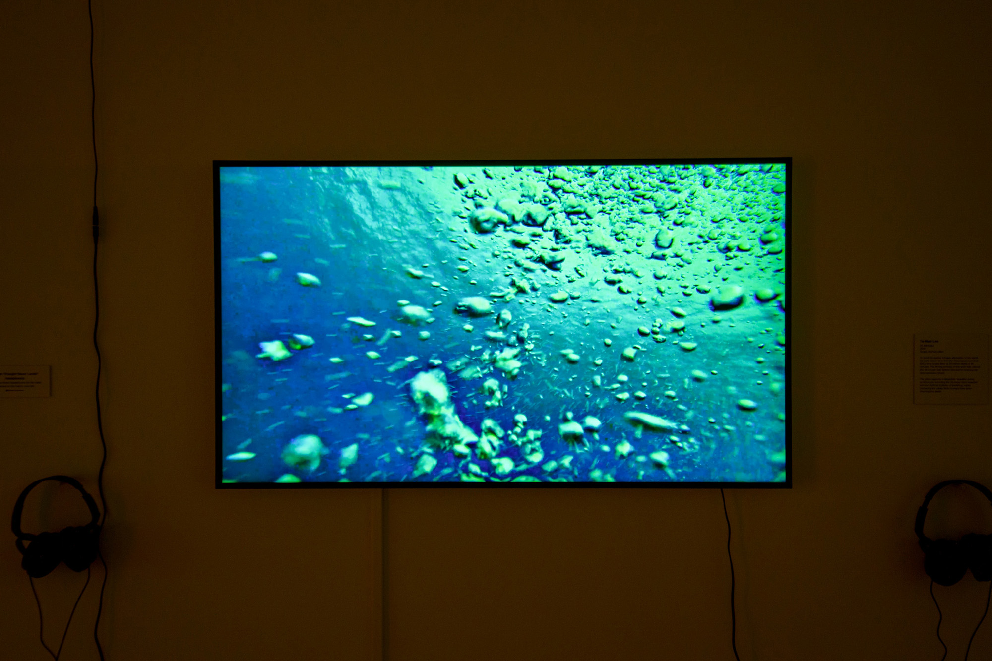 《45分鐘》以一種夢幻般的美麗畫面,持續的錄下20公尺的海水厚度以及規律的呼吸氣泡,其背後則是隱含著人類來到此處時的安全極限。